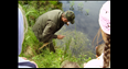 5. Dochodzimy do malowniczo położonego zbiornika wodnego w którym żyje bóbr europejski. Zbiornik wodny otoczony jest wokół wieloma gatunkami roślin, między innymi trzciną, sitowiem, pałką wodną, kosaćcem żółtym. Podążając wzdłuż zbiornika napotykamy kalinę koralową - szeroki krzew o wysokości do 4m posiada drobne białe kwiaty zebrane w płaskie baldachogrona. Owoce szkarłatnoczerwone mają cierpki, gorzki smak i są trujące. Ptaki nie jedzą owoców kaliny. Z kory wykonuje się odwar mający właściwości rozkurczowe. W weterynarii stosowana jest do leczenia pryszczycy. Wśród traw napotykamy gniazda pająków, docieramy do żeremi bobrów. Bobry prowadzą aktywny tryb życia o zmierzchu i w nocy. Znakomicie pływają, świetnie nurkują. Pod wodą mogą przebywać nawet do 15 minut. Kierując wzrok na zbiornik wodny możemy zauważyć gniazdującego wśród trzcin - trzciniaka.