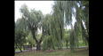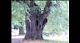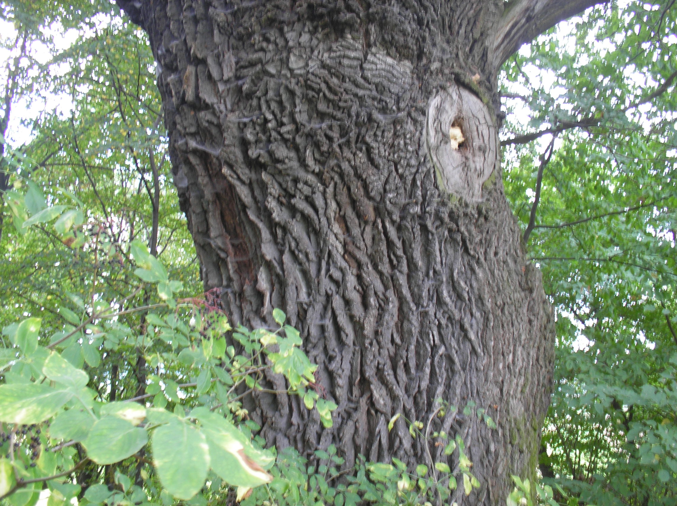 12. Pomnikowe drzewa Przechodząc przez parking dochodzimy w pobliże ogrodzenia od strony północnej. Spotykamy tu trzy wspaniałe okazy dębów szypułkowych (Quercus robur). Najstarszy i najgrubszy ma 530 cm obwodu i jest w zupełnie dobrej kondycji. Pozostałe maja obwody powyżej 400 cm Wyraźnie położenie na uboczu sprzyjało zdrowiu i kondycji drzew. Rosnąc w obniżeniu terenu nie były wystawione na ataki wiatrów i piorunów a także siekiery człowieka. Z kolei od strony zachodniej tuż przy ogrodzeniu zobaczymy przykłady drzew uszkodzonych przez pioruny z prześwitami i szczelinami wielometrowej długości. Trochę z boku już w głębi łąki rosną w parze grab zwyczajny (Carpinus betulus) z klonem zwyczajnym. Bluszcz pospolity (Hedera helix) wykorzystał klon zwyczajny (Acer platanoides) jako podporę dla siebie. Oba drzewa mają ok. 300 cm obwodu. Na innym z kolei klonie zobaczymy grzyba pasożyta smołowatą plamistość liści klonu (Rhytisma acerinum). Na terenie całego parku spotkamy co najmniej kilka okazów dębów szypułkowych o obwodzie przekraczającym 4 m. i kilkanaście o obwodzie przekraczającym 3 m. Stare drzewa noszą ślady pielęgnacji człowieka, mają przycinane konary niektóre miały aplikowane zastrzyki betonowe.