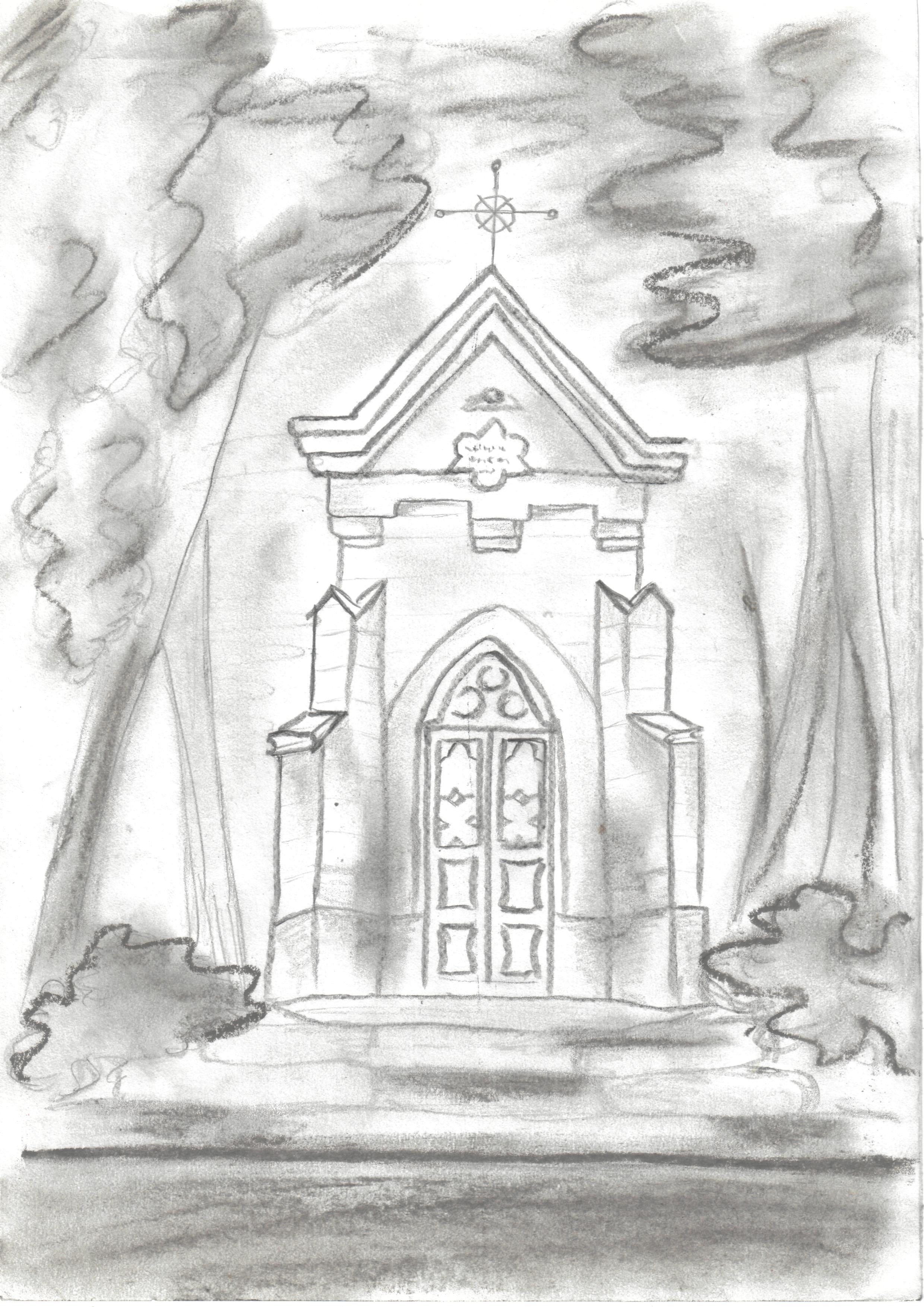 Idąc ścieżką po prawej stronie w dole mijamy parafialny kościół neogotycki, a obok jedną z kapliczek. Dochodzimy do okazałego i sędziwego platana klonolistnego (Platanus x acerifolia) o obwodzie 372 cm i wysokości 28 m, z charakterystyczną, szaro-kremową, łuszczącą się łaciato korą. Owocem platana są wydłużone orzeszki z pęczkiem szczecinek u nasady, zebrane w kuliste owocostany, rozpadające się wiosną. Pień w środku drzewa jest pusty, a w jego dziuplach zagnieździły się puszczyki. Naturalnie platany rosną w Ameryce Północnej, południowo-wschodniej Europie i Indiach. Na prawo od platana rośnie pozbawiona wierzchołka sosna wejmutka (Pinus strobus) posiadająca tylko trzy konary. Sosnę tę połamał mokry śnieg i silne wiatry halne. Na lewo od platana rośnie dąb błotny (Quercus palustris) o obwodzie 245 cm i wysokości 24 m. Naprzeciwko platana, po drugiej stronie brukowanej drogi, rośnie dąb szypułkowy (Quercus robur) o obwodzie 230 cm i wysokości 33 m.