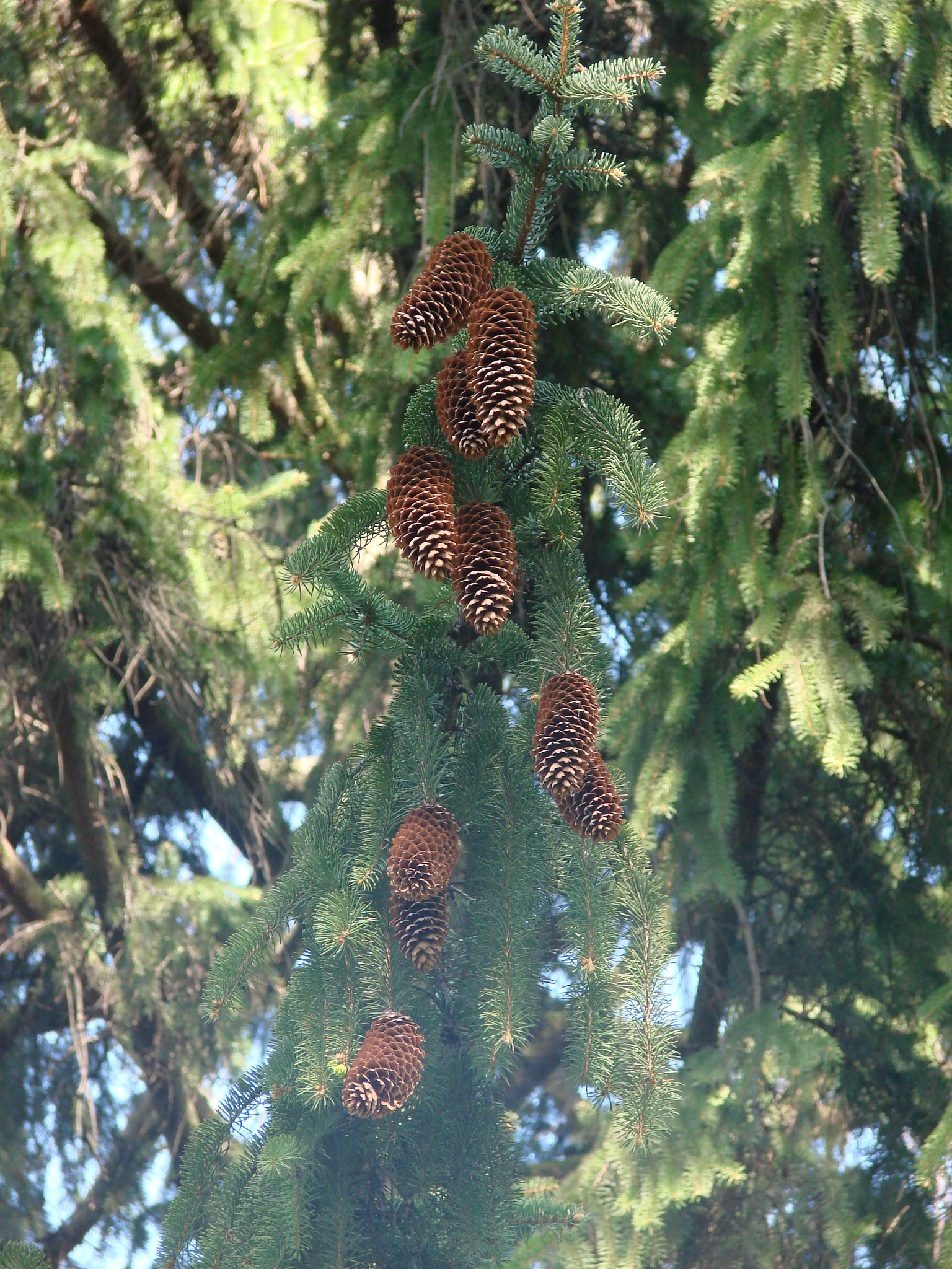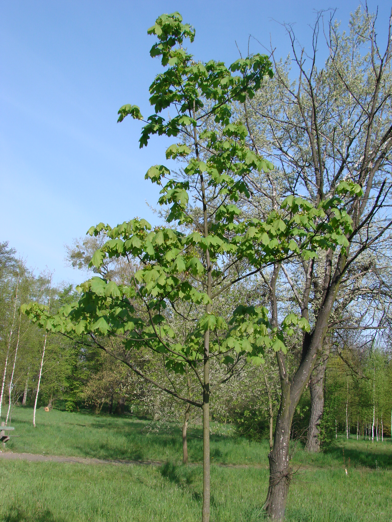 4. Na polanie obserwujemy skupiska brzóz (Betula), klonów pospolitych (Acer platanoides). Warto jest w tym miejscu zwrócić uwagę na daglezję, jesion wyniosły (Fraxinus excelsior) oraz topolę włoską (Populus nigra ‘Italica’). Dalej kierujemy się prosto aż do ścieżki, która biegnie w lewo, łącząc się z główną alejką.