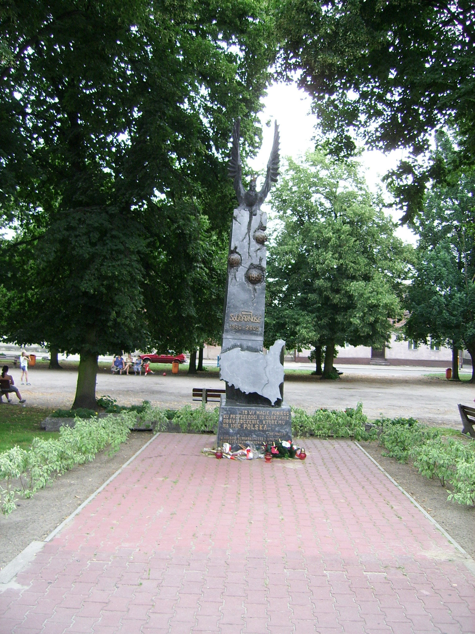 3. Następnym punktem naszego spaceru jest znajdujący się w zachodniej części placu Pomnik Solidarności. Pomnik ten został zaprojektowany przez Michała Niedźwiedzia i postawiono go w dniu 3 września 2005 roku, dokładnie w 25 rocznicę solidarności.