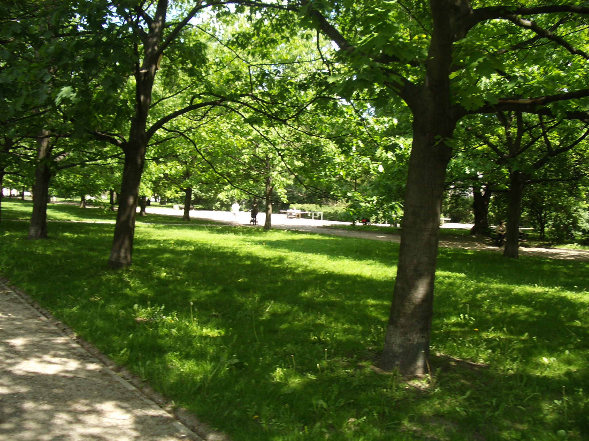 Zachodnia część parku - w kształcie trapezu, też jest przedzielona główną aleją (szerokości około 5m), która bierze swój początek od owalnego placu, biegnie środkiem trapezu do prostokątnego placu i dalej poprzez półkolisty plac dochodzi do ulicy Krzyckiego. Od placów odchodzą ukośne ścieżki, a w pobliżu ulicy Krzyckiego dodatkowe skróty piesze w formie łuków.